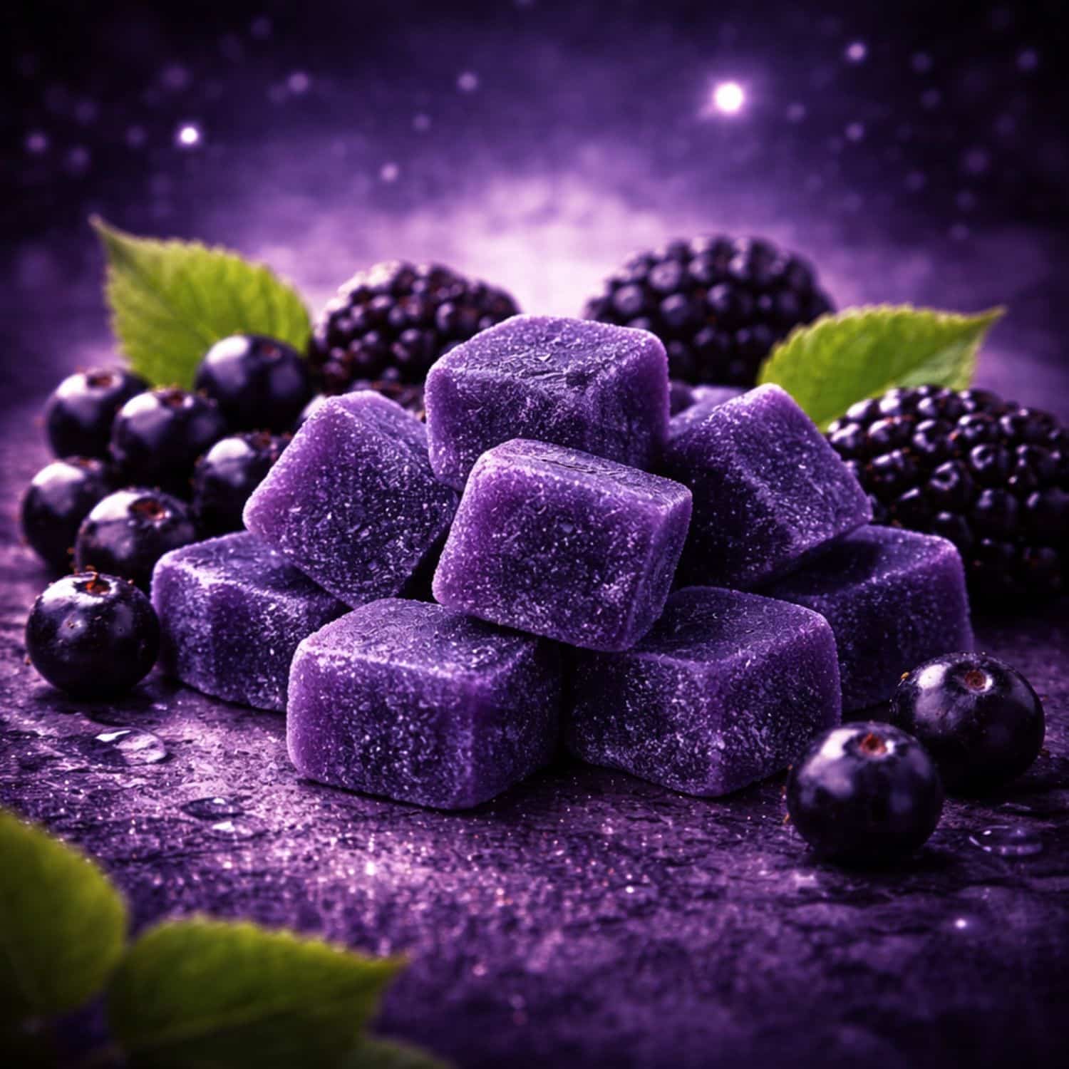 Leur goût riche de cassis noir et de mûre sauvage transforme la prise en véritable rituel sensoriel. Texture ferme puis fondante, teinte rouge violacée élégante, plaisir et bien-être réunis.